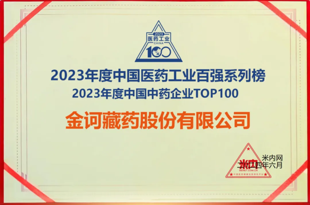 中國中藥企業百強榜發布,金訶藏藥連續6年上榜