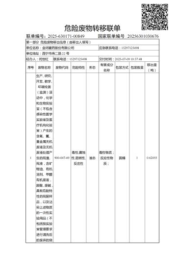 依法公開2025年危險廢物污染環境防治信息