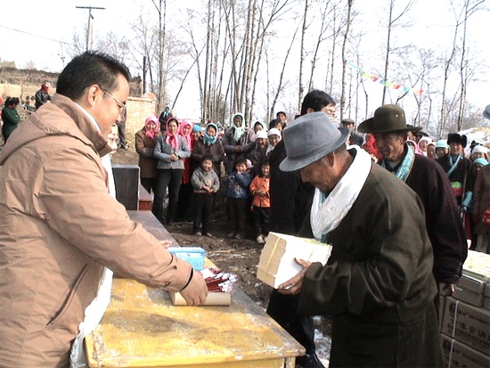 11/22 送醫送藥送溫暖 2005年11月22日,金訶藏藥在青海省西寧市湟中縣共和鄉卻西德哇村進行“送醫送藥送溫暖”活動,捐贈10余萬元的藥品和小學生學習文具。