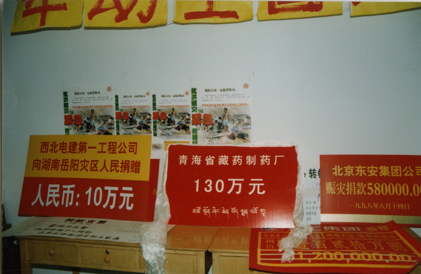 8/14 捐贈災區 1998年8月14日,金訶藏藥向湖北武昌等受災地區捐贈130萬元,包括價值80萬元的藏藥產品和50萬元現金。